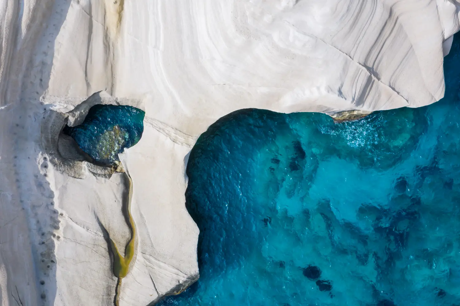 La plus célèbre de Milos, la plage de Sarakiniko est la première à visiter. L'une des meilleures et des plus connues plages de Grèce, elle offre un paysage unique de formations rocheuses étranges, vous donnant le sentiment d'être sur une autre planète. Roches blanches, mer bleue et petites piscines pour plongées et snorkeling. N'oubliez pas d'apporter votre eau et votre nourriture car il n'y a pas de café-bar à proximité.